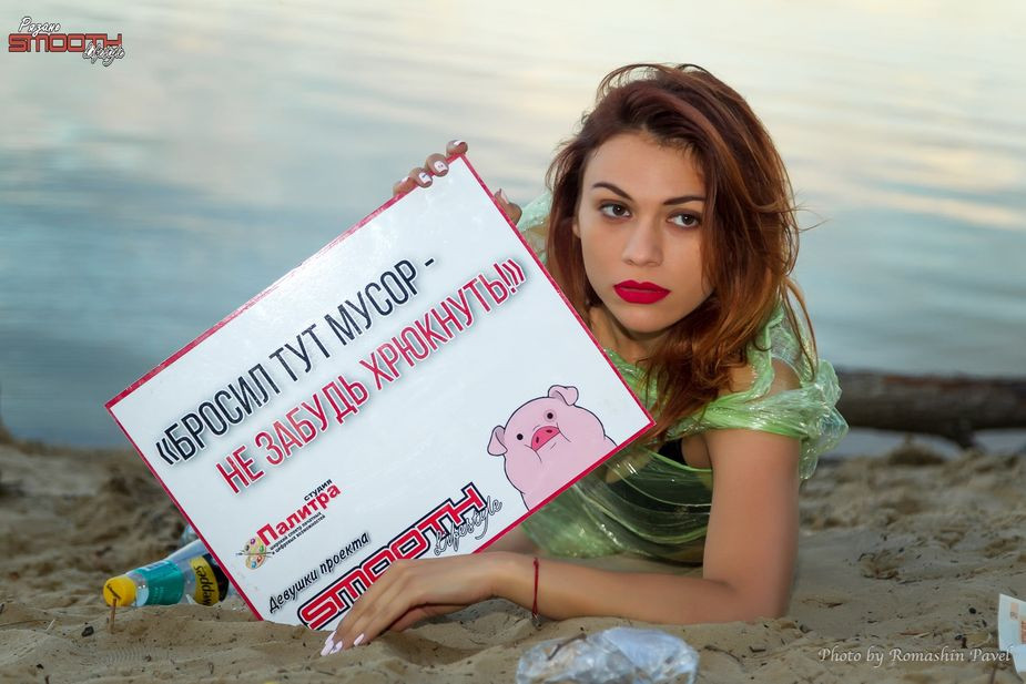 В фотопроекте приняли участие шесть рязанок и два фотографа. Непрофессиональные модели снялись в полиэтиленовых грязных «платьях» с замотанными в пакеты рыбами и старыми автомобильными покрышками в руках — так они показали, какие предметы выбрасывают отдыхающие на пляже. Девушки держали плакаты с надписями: «Бросил мусор — не забудь хрюкнуть» и «Донеси свой мусор до контейнера».