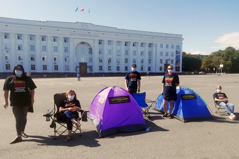Дольщики жилого комплекса «Центральный» вышли к зданию правительства Ульяновской области с пикетом. Вместо плакатов они установили палатки как символ нерешенной проблемы.