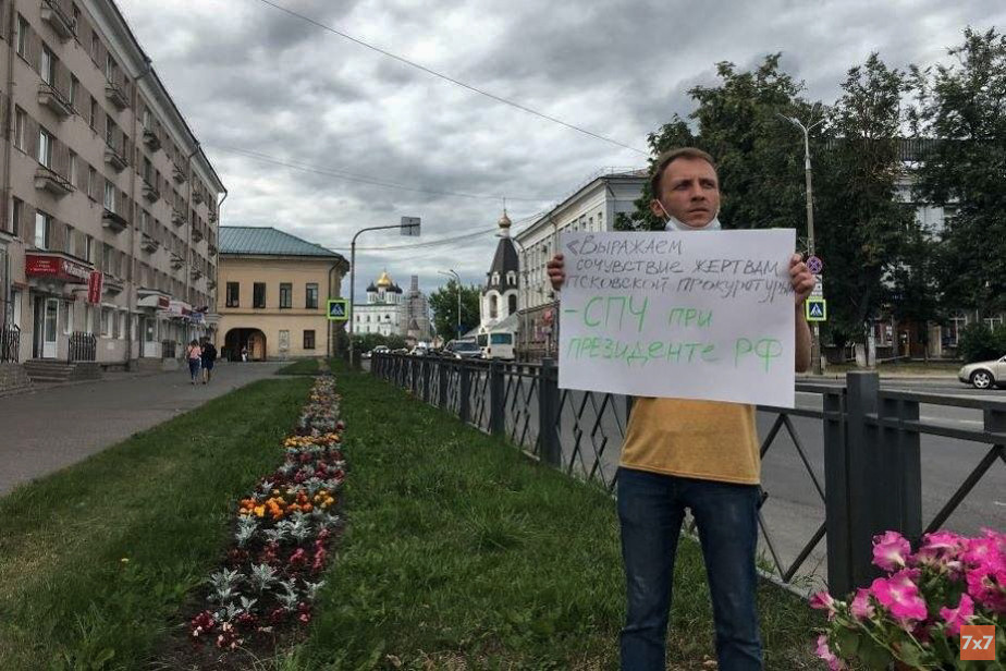 Дениса Камалягина и журналиста Владимира Капустинского задержали на одиночных пикетах против уголовного дела их коллеги Светланы Прокопьевой, осужденной за оправдание терроризма. На обоих составили протоколы по статье 20.6.1 КоАП РФ за нарушение самоизоляции. 4 августа Камалягина как возможного организатора пикетов заподозрили еще и в нарушении статьи 20.2 КоАП РФ («Нарушение порядка организации и проведения пикетирования»).