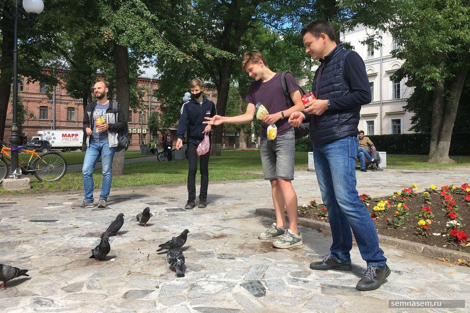 В Пскове «покормить голубей» в знак солидарности с жителями Хабаровска к зданию администрации области 1 августа вышли около 30 человек. Некоторые участники выложили из семечек, гречки и риса надписи в поддержку хабаровских протестов: «Свободу», «Псков с Хабаровском» и «Фургал лучше Путина». Полиция никого не задерживала.