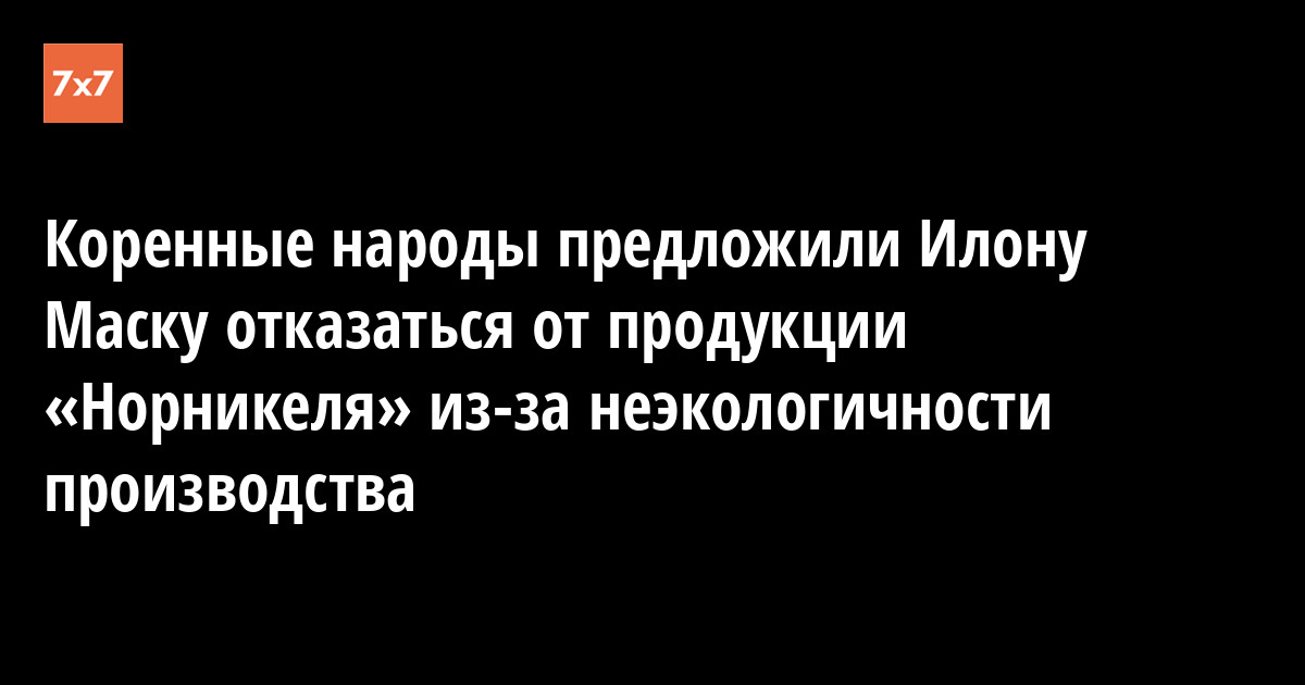 Представители коренных народов Севера, Сибири и Дальнего Востока направили обращение к президенту американской компании SpaceX Илону Маску с просьбой перестать закупать продукцию компании «Норникель». Авторы письма считают, что компания наносит огромный вред экологии России. Письмо было опубликовано на сайте «Абориген Форум».
