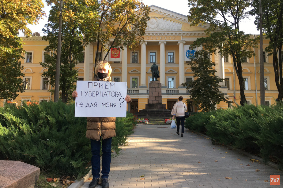 Мама бывшего активиста «Открытой России» Артёма Милушкина, находящегося в следственном изоляторе №1 Пскова, вышла на одиночный пикет к зданию администрации области. Женщина потребовала встречи с губернатором, в частности, из-за возможной угрозы распространения коронавируса в СИЗО. Об этом сообщил корреспондент «7х7», который побывал на акции.