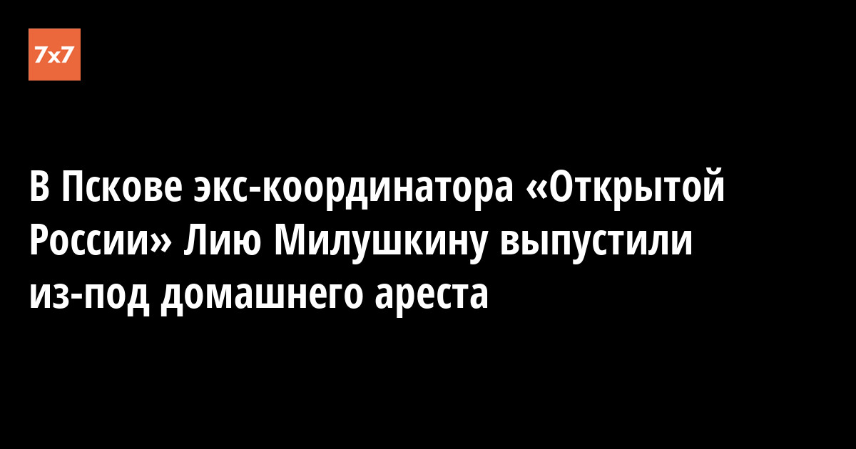 Псковский суд выпустил из-под домашнего ареста активистку Лию Милушкину, которую подозревают в сбыте наркотиков. Она находилась под арестом с января 2019 года. Суд изменил меру пресечения на запрет определенных действий. Об этом «7х7» рассказала адвокат Татьяна Мартынова.