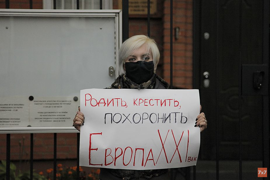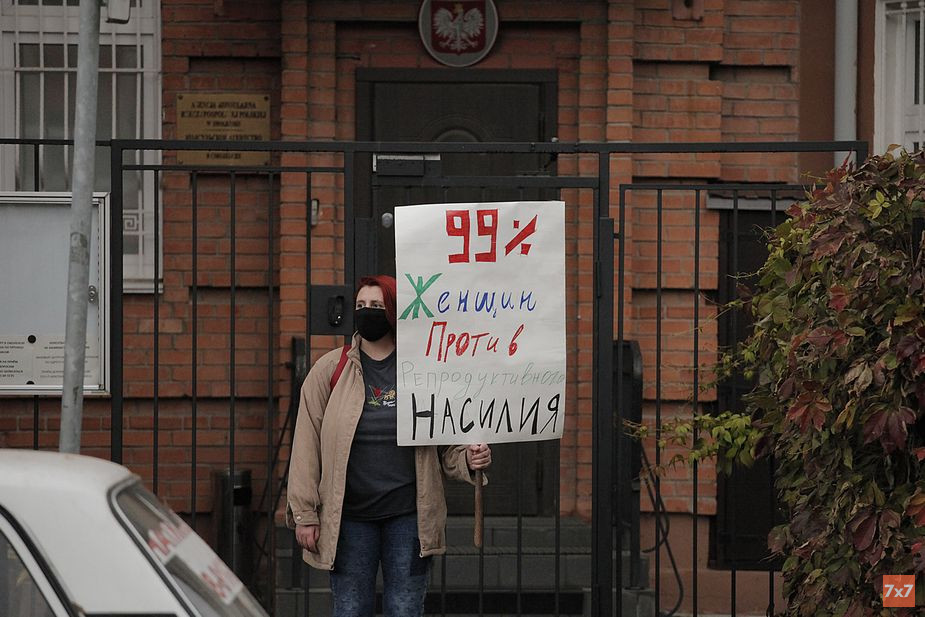 Активистки сообщества «Женское дело | Смоленск» 31 октября провели в Смоленске серию одиночных пикетов в рамках международной акции солидарности с польским движением против запрета абортов. Акция прошла перед зданием Консульского агентства Польши на улице Мира. Об этом сообщил корреспондент «7х7».