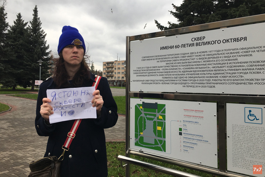 — Я вышел на пикет, потому что этот сквер — сквер Искусств и мне нравится это название. Никто его не называет сквером имени 60-летия Великого Октября, поэтому я стою с таким плакатом. В голосовании о названии должны участвовать только псковичи или относящиеся к городу люди. Процедура должна быть верифицирована. А то какой смысл в голосовании, если его результаты зависят от подписчиков крупных про- или антикоммунистических пабликов в соцсетях? Обидно, что чиновники этого вмешательства не увидели, — сказал Александр Родионов.