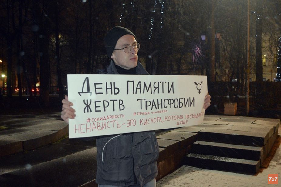 — Сегодня мы проводим пикет и сделали небольшой алтарь в память о тех, кого нет с нами, в память о жертвах трансфобии, которая, к сожалению, остается невидимой формой дискриминации, в том числе в российском обществе, — рассказал об акции активист Ярослав Сироткин. — Жертв трансфобии не видно в полицейской статистике, потому что это описывается как бытовое преступление, самоубийство или убийство. Нет отдельной категории, мы точно не знаем, сколько людей погибают, сколько людей подвергаются преследованиям из-за собственной идентичности. В этом году вскрылось три преступления, все три совершенно зверские. В одном случае транс-женщина была изнасилована и убита сотрудником полиции, во втором — в Петербурге произошло чудовищное расчленение, но человека, который это сделал, к счастью, поймали. У него на спине была татуировка о Боге. Двоемыслие такое: как можно одновременно ненавидеть и разговаривать о Боге? В Челябинске произошло совершенно дикое преступление: как можно представить в XXI веке, что человека могли избивать, насиловать и забить под утро телевизором только из-за того, что он признался, что является трансгендером. Убить за такое — чудовищно.