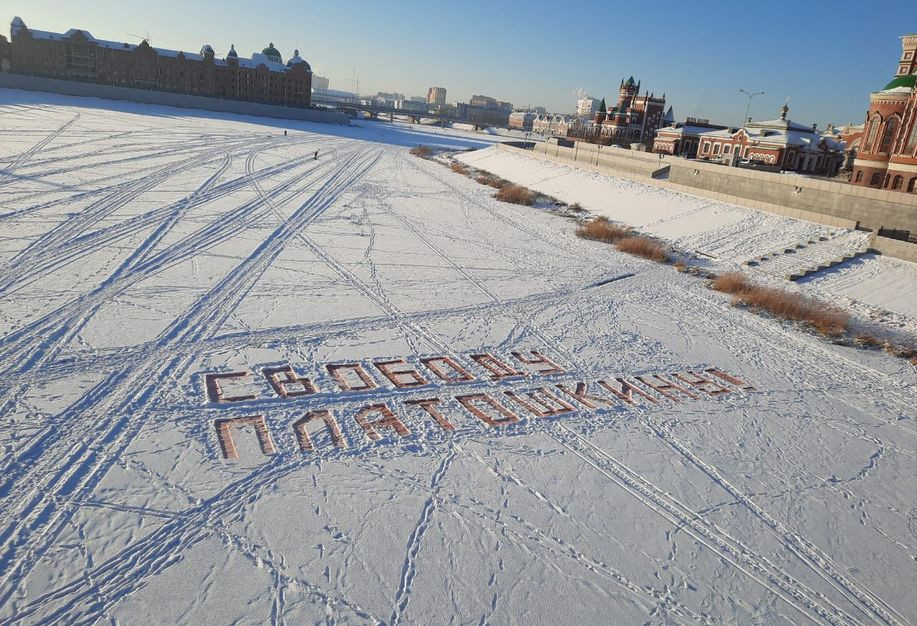 В Йошкар-Оле активисты общественного движения «За новый социализм» 6 декабря написали пищевой краской на льду реки Малая Кокшага «Свободу Платошкину». Надпись сделали в рамках всероссийской акции в поддержку Николая Платошкина, лидера движения, находящегося под домашним арестом. Об этом сообщил активист Дмитрий Мишин на своей странице в соцсети «ВКонтакте».