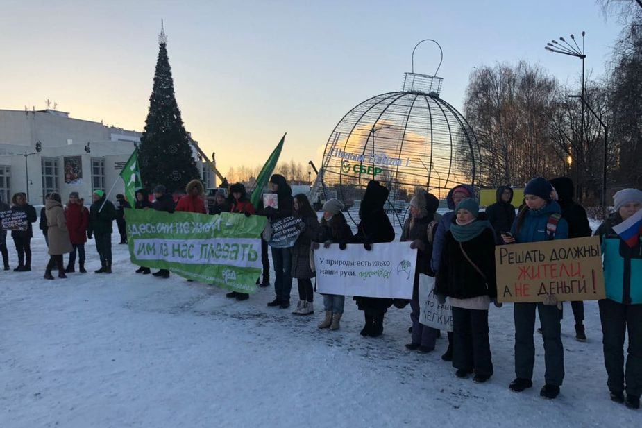 Несмотря на мороз, участники согласованной акции больше часа простояли возле здания правительства Удмуртии с плакатами «Здесь они не живут - им на нас плевать!», «Должны решать люди, а не деньги» и другими. Они требовали вернуть лесному массиву на улице 40 лет Победы статус городских лесов, который бы защищал его от вырубки.