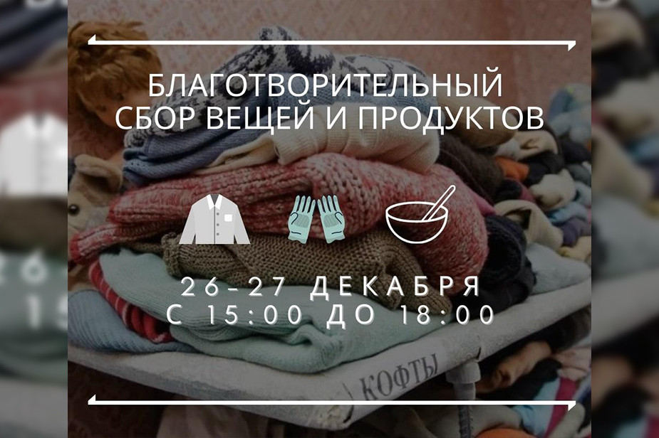 Принести можно мужскую зимнюю обувь и одежду разных размеров: куртки, свитера, джинсы, теплые штаны, шапки и нижнее белье. Из продуктов волонтеры советуют приносить гречку, рис, макароны, сахар, чай, тушенку, консервы, растительное масло и замороженные продукты.