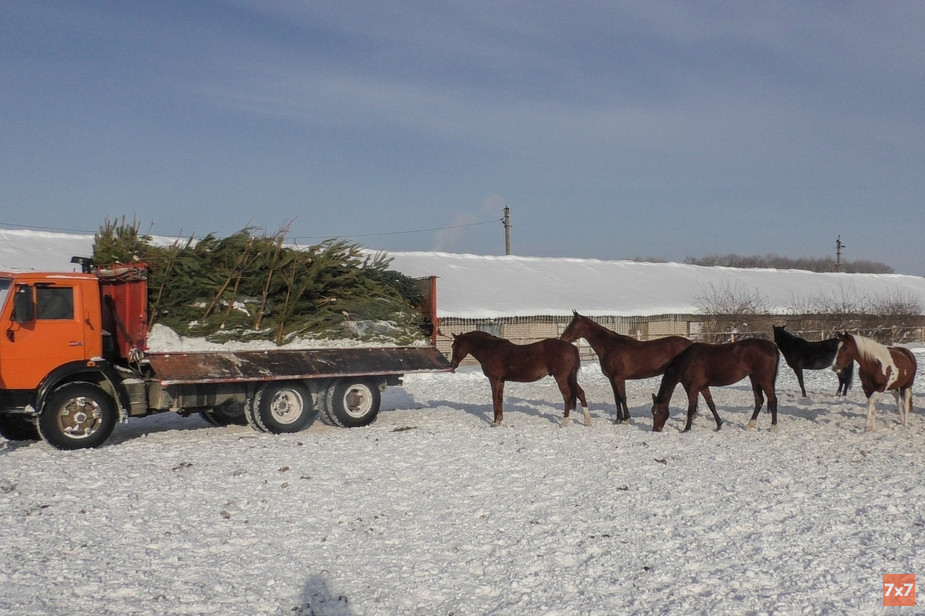 В каждый грузовик поместилось от 100 до 200 елок. Для каких-то хозяйств достаточно одного грузовика, другие попросили по 5–10 машин. Елки пошли на корм козам и лошадям. Один из первых грузовиков отправился на конную ферму в село Богословка в 15 км от Пензы. Там живет 35 спортивных лошадей — чемпионов российских и международных соревнований.