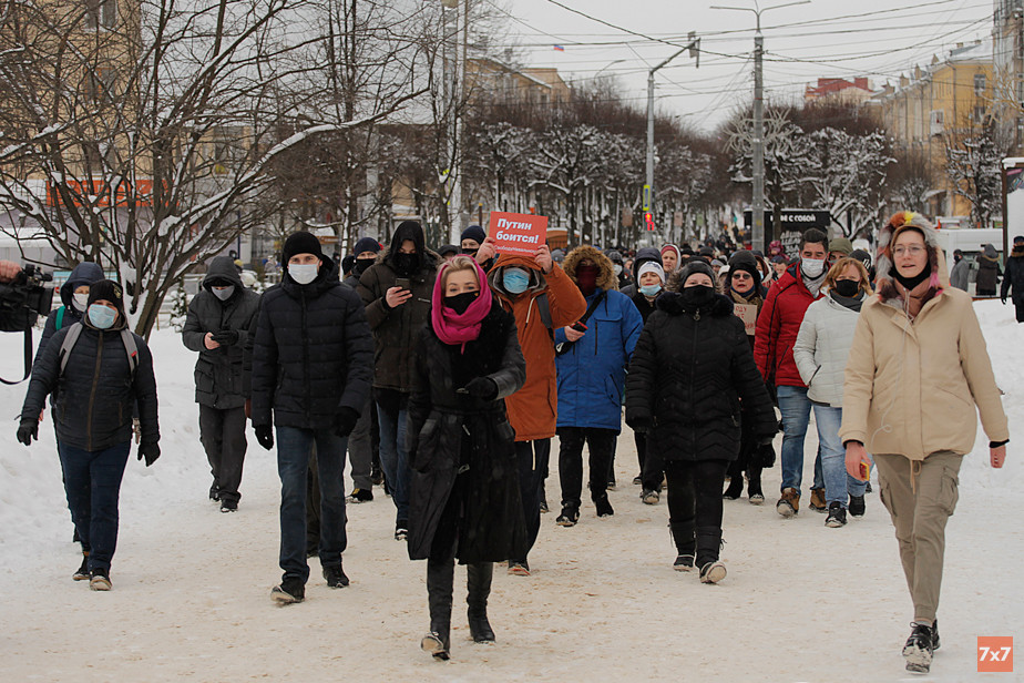 Всего, по подсчетам корреспондента «7х7», в несогласованной акции в поддержку Алексея Навального поучаствовало около 150 человек — почти в шесть раз меньше, чем на акции 23 января, задержали около 10 человек, по данным портала «ОВД-Инфо» — 6. Одним из первых задержанных стал активист и депутат Стабенского сельского поселения Александр Богомаз. Его доставили в полицию и составили протокол по части 1 статьи 20.2 КоАП. Спустя два часа Богомаза отпустили. Также в полиции оказались юрист и общественный активист Оксана Литвиненко, член Союза художников РФ Константин Шляховой и 19-летняя Яна Козырева.