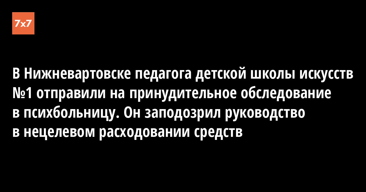 Руководство детской школы искусств №1 в Нижневартовске отправило педагогов на принудительное психиатрическое освидетельствование. Один из них заявил, что это незаконно, и заподозрил руководство в нецелевом расходовании средств. Об этом он рассказал «7х7».