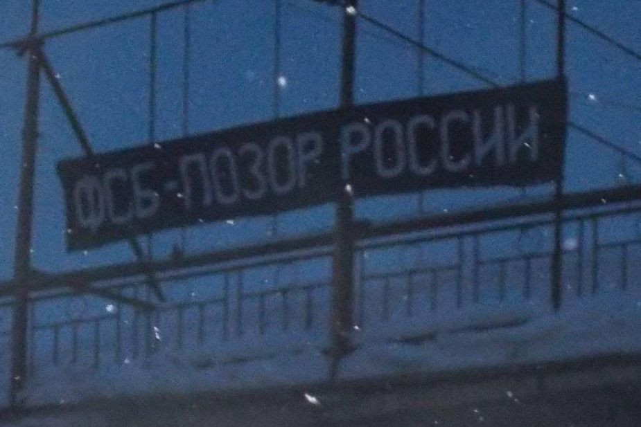 В Иванове утром 12 февраля задержали активистку Ольгу Назаренко, которая вывесила баннер «ФСБ — позор России» на одном из железнодорожных мостов города. Об этом в Facebook сообщила сама Назаренко.