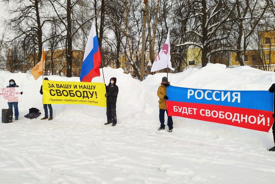 Акция продлилась около часа. Протестующие стояли с триколорами и плакатами «Россия будет свободной!», «За вашу и нашу свободу!», «Сегодня сажают моих друзей, завтра посадят ваших» под песни ДДТ «Свобода» и Виктора Цоя «Перемен».