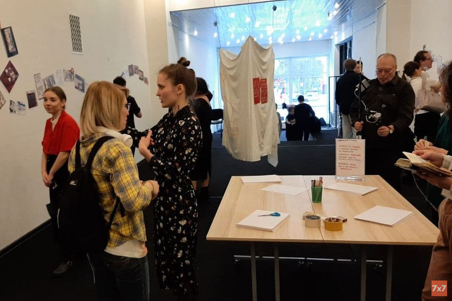 Еще одной особенностью созданного Дарьей формата стали инсталляции, благодаря которым стираются границы между автором и зрителем. Например, здесь есть «будка гласности» - специально выделенное изолированное пространство, в котором посетители могут уединиться для личного диалога. Или стол с художественными принадлежностями - с их помощью каждый желающий может нарисовать свою невысказанную историю и дополнить выставку.