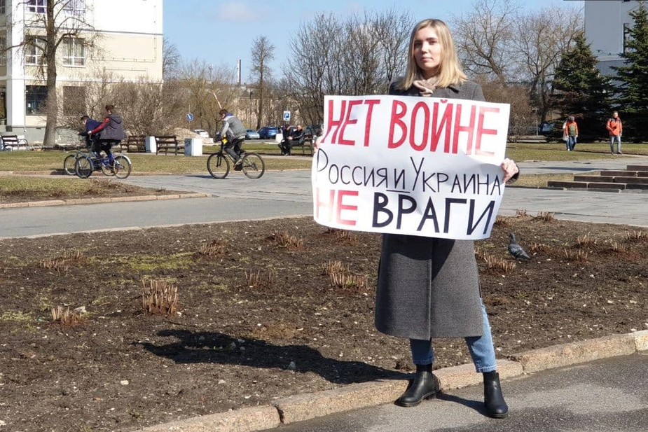 В Пскове педагог Ирина Милютина 11 апреля вышла на одиночный пикет с плакатом «Нет войне, Россия и Украина не враги». Об этом сообщило издание «Север.Реалии»*.