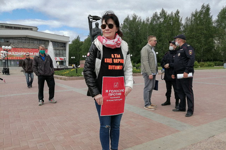 Перед началом суда 23 апреля в Сыктывкаре на Театральной площади местный житель провел одиночный пикет в поддержку Елены Гулиной.