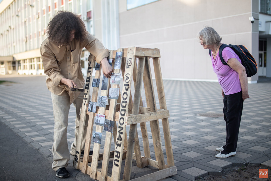 Первый поддон с фотографиями Фёдор Калинин разместил у здания администрации Кирова в 18:30. Пока он устанавливал несанкционированную выставку, полиции и охраны не было, а прохожие старались издалека рассмотреть снимки.