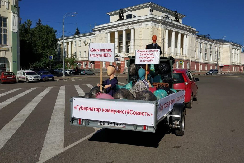 Молодежная общественная организация «Вятичи» провела в Орле акцию, посвященную провалу мусорной реформы в регионе. Активисты сделали передвижную инсталляцию в виде манекенов, заваленных мусором, и проехали с ней по районам города. Об этом корреспонденту «7x7» рассказал общественник Александр Солдатенков.