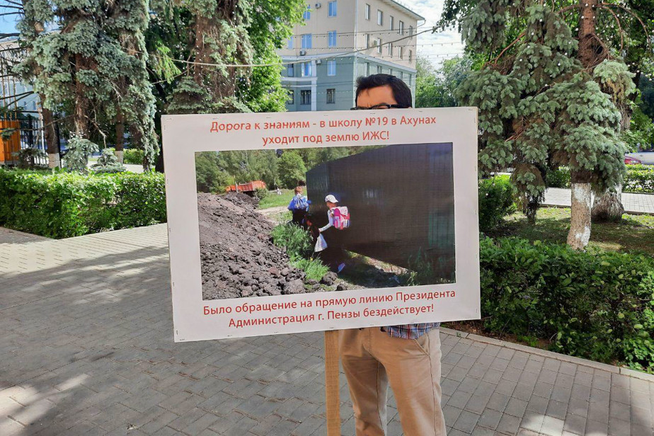 Житель микрорайона Ахуны Максим Галныкин 3 июня провел пикет у здания правительства Пензенской области. Он держал в руках фотографию, на которой изображено, как школьники обходят строительный забор по бурьяну. Выше стояла надпись: «Дорога к знаниям — в школу №19 в Ахунах — уходит под землю ИЖС!». Мужчина потребовал вернуть дорогу, которую мэрия продала вместе с участком под строительство многоэтажки. Собственник перекрыл ее, ограничив пожарный проезд и проход, по которому местные дети ходили в школу.