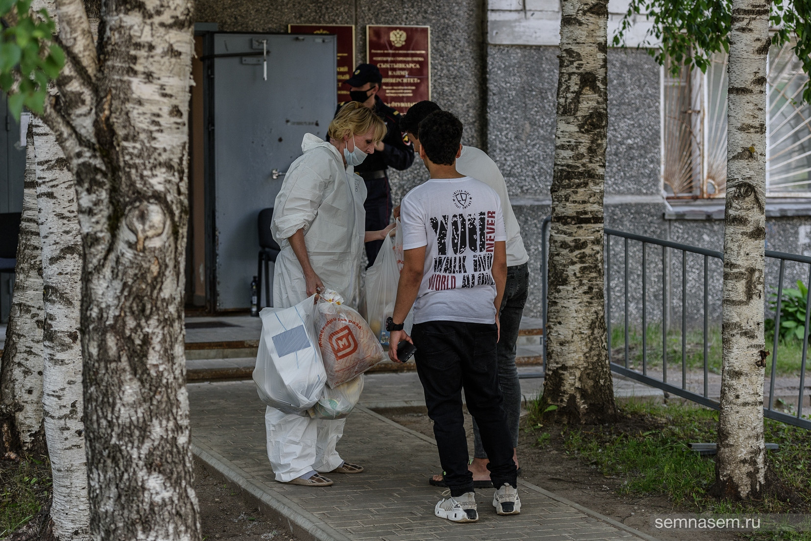 — [В соцсетях] было сказано, что 17–18 июня «Молодая гвардия» привозила воду и еду, но среди моих знакомых ни воды, ни еды не было. С сегодняшнего дня [21 июня] организовали горячее питание: суп, второе, хлебушек, еда на ужин. Еды на целый день хватает. Но не обеспечивают водой, только сок маленький давали. Выходить за продуктами запрещено, но можно попросить родственников или знакомых передать еду через охранника или вызвать доставку, — рассказал студент.