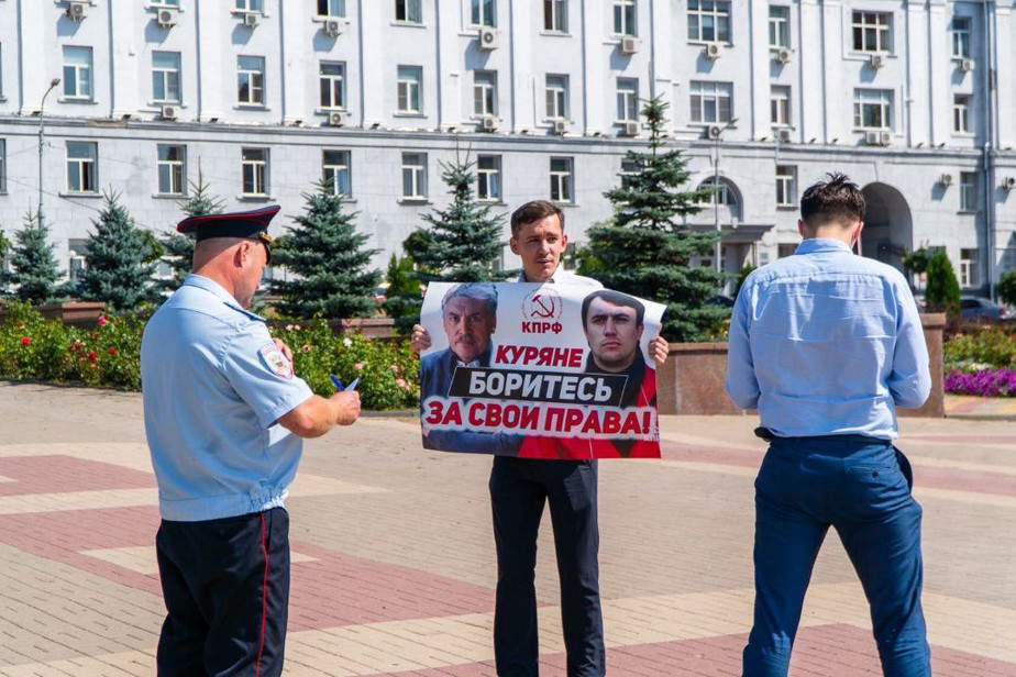 Коммунисты Заволжского района Ярославля 25 июля провели серию одиночных пикетов у здания областной избирательной комиссии.