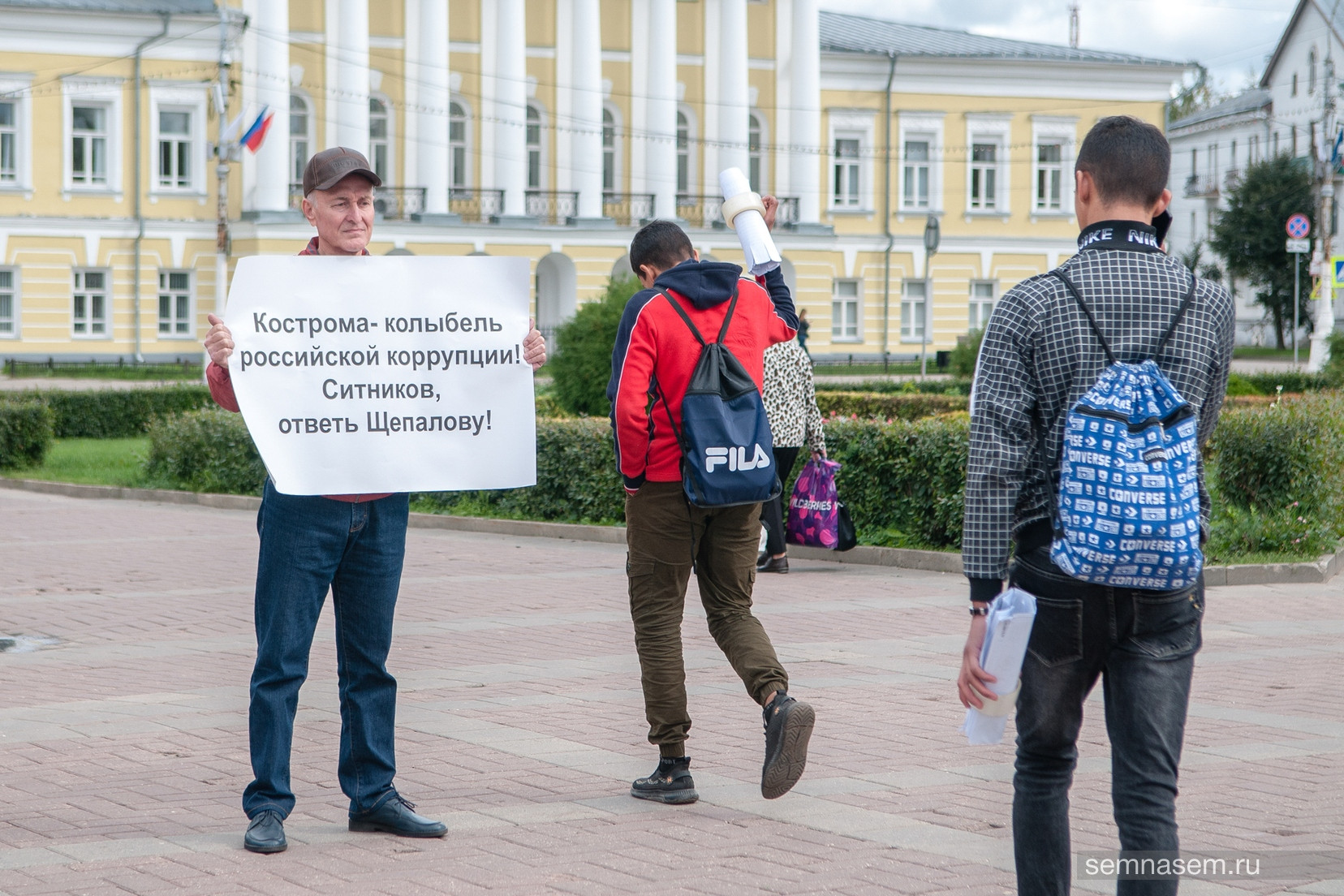 Активисты общественной организации «Народовластие» 3 сентября стояли в пикетах в центре Костромы: на площади Сусанинской и возле здания областной администрации на улице Дзержинского. Члены Женского союза Костромской области проводили пикетирование на площади Мира. Общественники вышли с плакатами «Костромская область — колыбель российской коррупции. Ситников, ответь Щепалову!», «Зачем выборы губернатора, если за назначение платят в Москву? Ситников, ответь Щепалову!» и «Депутат Щепалов обвинил окружение губернатора во взятках. Где расследование?».
