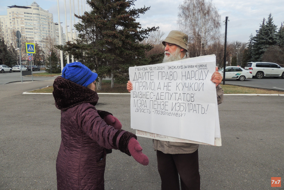 В этот момент у здания Пензенской гордумы активист Юрий Вобликов провел одиночный пикет. Он потребовал вернуть отмененные в 2004 году прямые выборы мэра и проводить их без посредничества депутатов, которые, по мнению Вобликова, представляют интересы бизнеса.