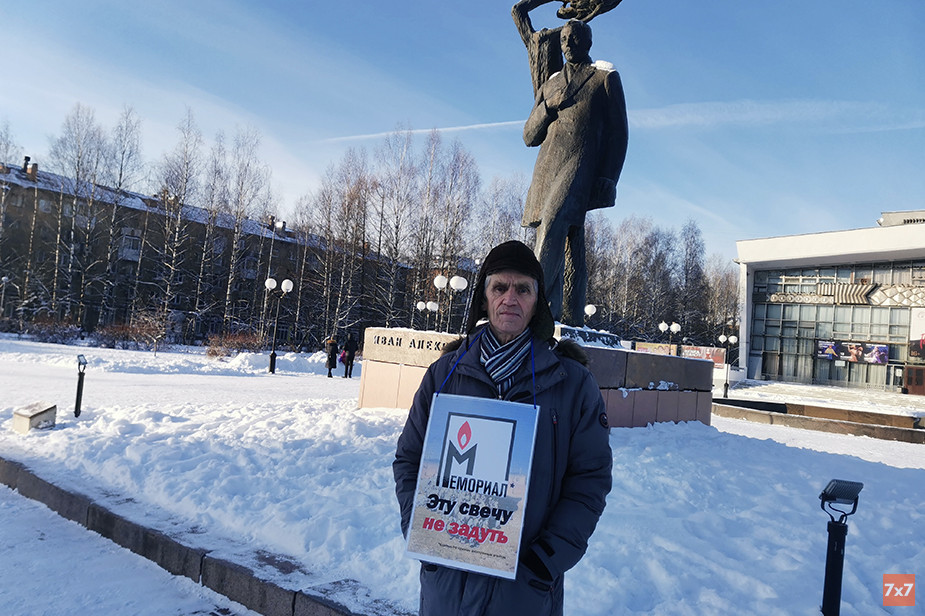 Пенсионер Сергей Харюков 14 ноября вышел с одиночным пикетом в поддержку «Международного Мемориала»* к памятнику основателю коми литературы Ивану Куратову на Театральной площади Сыктывкара. За несколько дней до этого на сайте Change.org появилась петиция с требованием остановить ликвидацию историко-просветительской организации, на момент публикации петицию подписало более 7 тыс. человек. О пикете «7х7» рассказал Харюков.