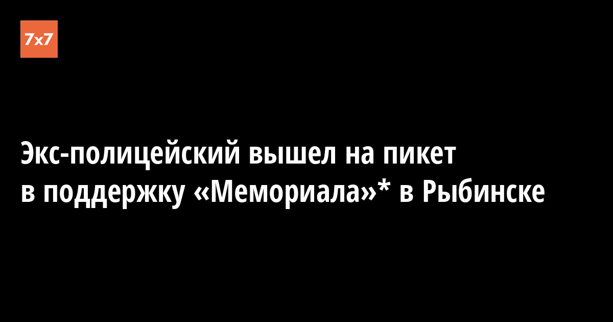 Бывший майор полиции Олег Кашинцев вышел на пикет в Рыбинске против ликвидации «Мемориала»*. Он считает, что правозащитная организация мешает действующей власти, и призвал горожан поддержать центр. Об этом Кашинцев сообщил «7x7».