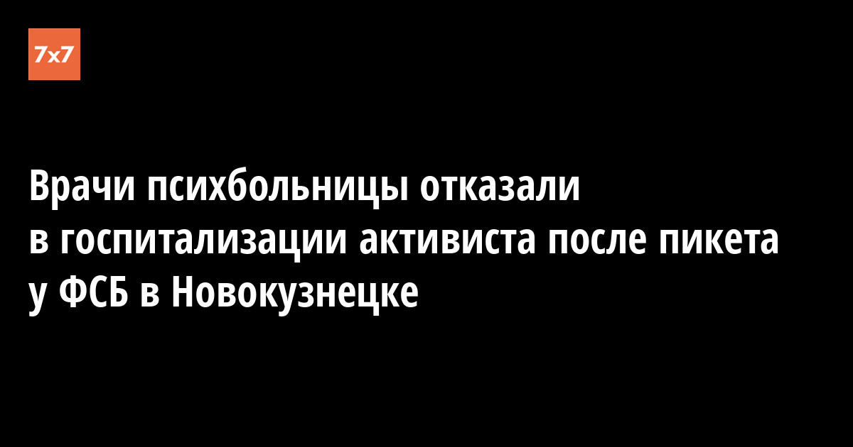 Врачи психиатрической больницы Новокузнецка отказались принудительно госпитализировать местного активиста Игоря Горланова. В учреждение его доставили по просьбе полицейских, которые задержали мужчину во время акции в поддержку сирот у здания ФСБ. Об этом «7х7» рассказал его защитник юрист Алексей Прянишников.