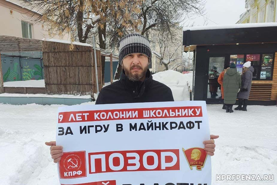 Депутат от КПРФ в Пензенской гордуме Александр Смирнов провел одиночный пикет против приговора школьникам из-за игры Minecraft. Он недоволен решением суда, который приговорил одного из подростков к пяти годам колонии за сообщение о подрыве здания ФСБ в игре, а двух других — к условному сроку.