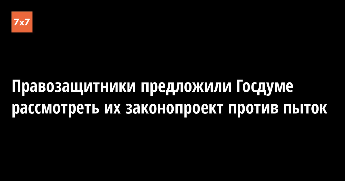 Комитет против пыток и фонд «Общественный вердикт»* предложили Госдуме рассмотреть их законопроект против пыток. Правозащитники сообщили «7х7», что считают законопроект сенаторов Андрея Клишаса, Владимира Полетаева и депутата Госдумы Павла Крашенинникова опасным и «бесполезным». По их мнению, сенаторы не выделили пытки как самостоятельные преступления, а расценили как крайнее превышение должностных полномочий. По словам юристов, законопроект не предусматривает ответственности для тех, кто отдает приказ пытать людей, и в нем нет степеней тяжести (например, если преступление носит групповой характер или совершено с особой жестокостью).