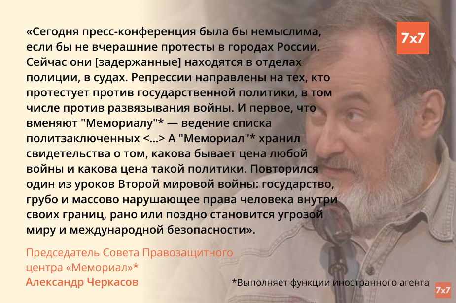 Правозащитники «Мемориала»* высказались против военной спецоперации в Украине, которую 24 февраля объявил президент Владимир Путин. Председатель Совета Правозащитного центра «Мемориал»* Александр Черкасов посчитал, что организацию признали иноагентом именно из-за заявления активистов против агрессии к Украине в 2014 году.