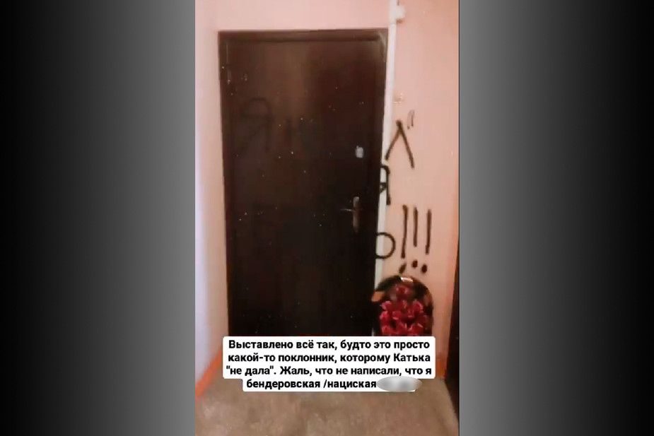 Неизвестные написали на дверях квартиры бывшей журналистки ГТРК «Пенза» и активистки Екатерины Миленькой: «Я нашел тебя, *****!» — и оставили похоронный венок. По словам девушки, это сделали из-за ее антивоенной позиции. Об этом она сообщила в Instagram*.