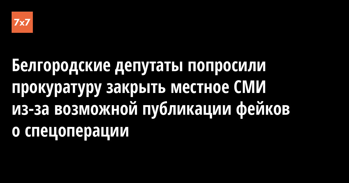 В Белгородской области депутаты Новооскольского горокруга обратились в районную прокуратуру с просьбой проверить работу редактора информагентства «Быт» Евгения Белоусова и закрыть СМИ. Депутаты считают, что Белоусов мог распространять фейки о спецоперации, потому что был координатором белгородского отделения признанной иноагентом организации за права избирателей «Голос». В прокуратуру они предоставили скриншоты двух публикаций издания — перепечатки новостей из других СМИ. Среди них — новость о несогласованной акции в Белгороде в поддержку военных и тезисы из интервью депутата Госдумы от партии «Новые люди» Сарданы Авксентьевой с психологическими советами.
