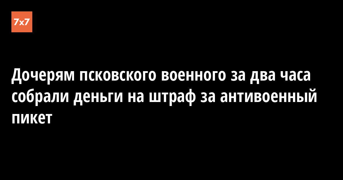 Сестрам Елизавете и Анастасии Григорьевым из Пскова за два часа собрали деньги на уплату штрафов в 20 тыс. руб. Их суд назначил за пикет против [Роскомнадзор] в Украине. Отец девушек в этот момент воевал на территории соседнего государства. Об этом сообщило издание «Псковская губерния».