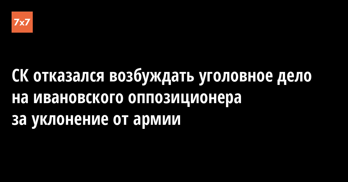 Военкомат попросил Следственный комитет Ивановской области возбудить уголовное дело в отношении активиста Михаила Гусева за уклонение от армии. Но следком не нашел в действиях Гусева состава преступления и отказал военкомату. Об этом в своем Telegram-канале рассказал активист.