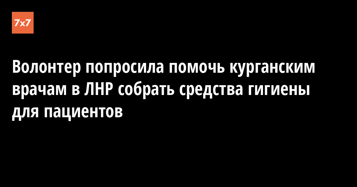 Волонтер Ксения Кустова попросила помочь курганским врачам в ЛНР собрать средства гигиены для пациентов. Кроме этого, пациенты Стахановского военного госпиталя нуждаются в воде, шприцах, пеленках, шампунях, зубной пасте и щетках. Врачей обеспечивают материалами, но средств гигиены не хватает.