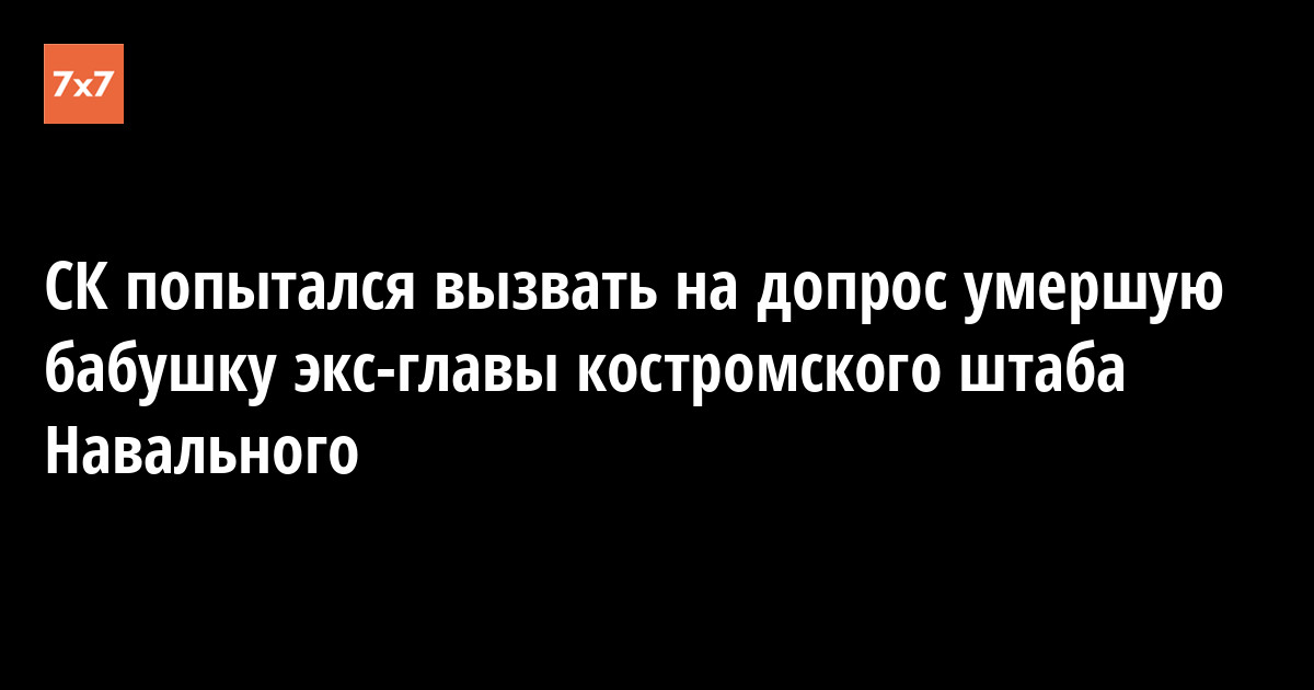 Сотрудники Следственного комитета выдали матери экс-главы штаба Навального в Костроме Александра Зыкова повестку на допрос. В ней в качестве свидетеля была указана бабушка активиста, которая умерла 10 лет назад. Впоследствии следователи исправили ошибку и вызвали на допрос маму Зыкова. Об этом молодой человек рассказал в своем Telegram-канале.