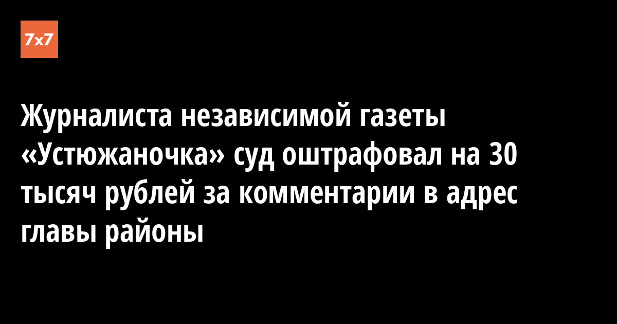 Журналиста «Устюжаночки» Юрия Седелкова суд оштрафовал на 30 тыс. руб. за негативные комментарии в адрес главы Великоустюгского района Александра Кузьмина. Об этом рассказала главный редактор газеты Антонида Смолина.