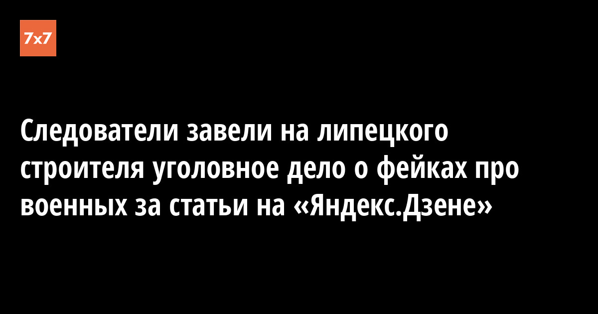 Дело на 60-летнего Александра Григорьева завели в начале сентября. Мужчина уточнил «ОВД-Инфо», что ему вменили уголовную статью из-за его публикаций о военных действиях в Украине на «Яндекс.Дзене». 29 августа его задержали во время вахты в Старом Осколе и доставили в квартиру в Липецке, где провели обыск.
