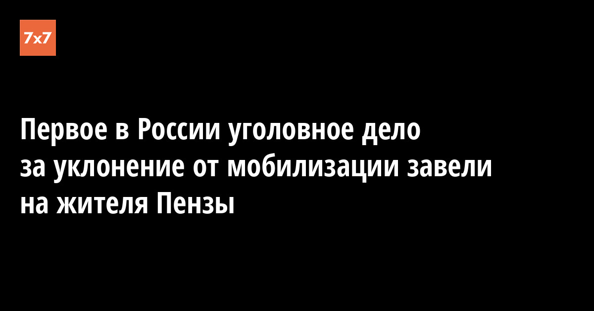 СК по Пензенской области завел первое в России уголовное дело за уклонение от мобилизации. 32-летнего жителя Кондольского сельсовета задержали и поместили в изолятор временного содержания. Об этом сообщил правозащитник Павел Чиков и подтвердили на сайте регионального СК.