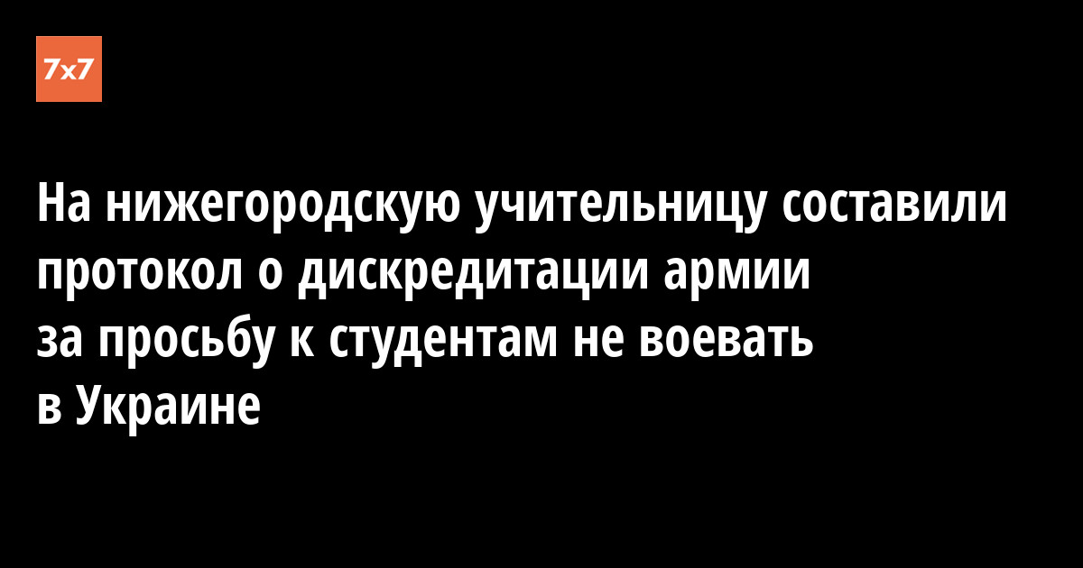 Полицейские составили на нижегородскую учительницу Ольгу Лизункову протокол о дискредитации армии. На нее донесли студенты после разговора о мобилизации и просьбы не воевать в Украине, после чего Лизункова уволилась по собственному желанию. Об этом сообщил Telegram-канал «Сердитая Чувашия».