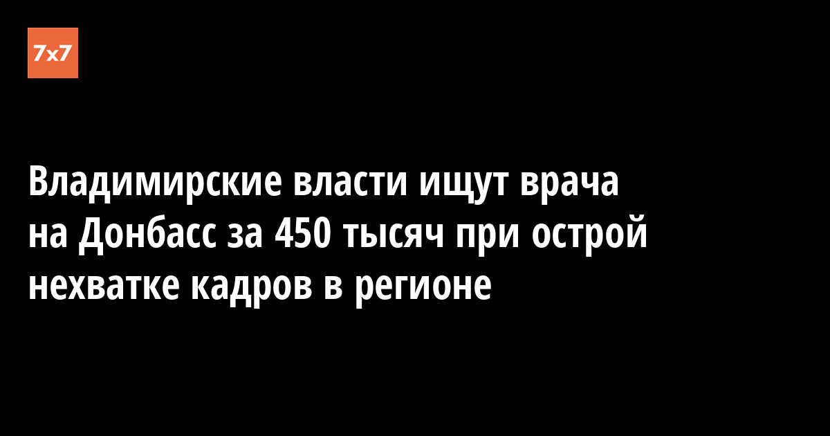 Владимирский департамент здравоохранения опубликовал вакансию детского офтальмолога. Соискателю предлагают зарплату от 450 тыс. руб. и работу в Донбассе. В самом регионе власти официально подтверждают острый дефицит врачей. На это обратило внимание издание «Довод» 20 ноября.