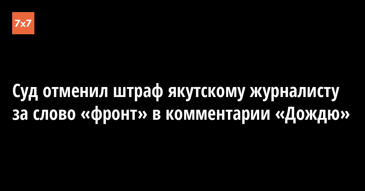 Суд отменил штраф главному редактору «Якутии.Инфо» Тимофею Ефремову за слово «фронт» в комментарии «Дождю». Ему назначили 30 тыс. руб. после жалоб местной жительницы. Об этом 13 декабря сообщило издание Ефремова.