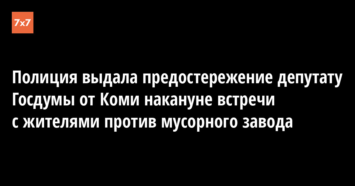 Сотрудники МВД выдали депутату Госдумы от Коми Олегу Михайлову предостережение о недопустимости нарушения закона. Они выдали его накануне встречи депутата с жителями Эжвы, которые протестуют против строительства мусоросортировочного комплекса. Об этом Михайлов сообщил «7х7».