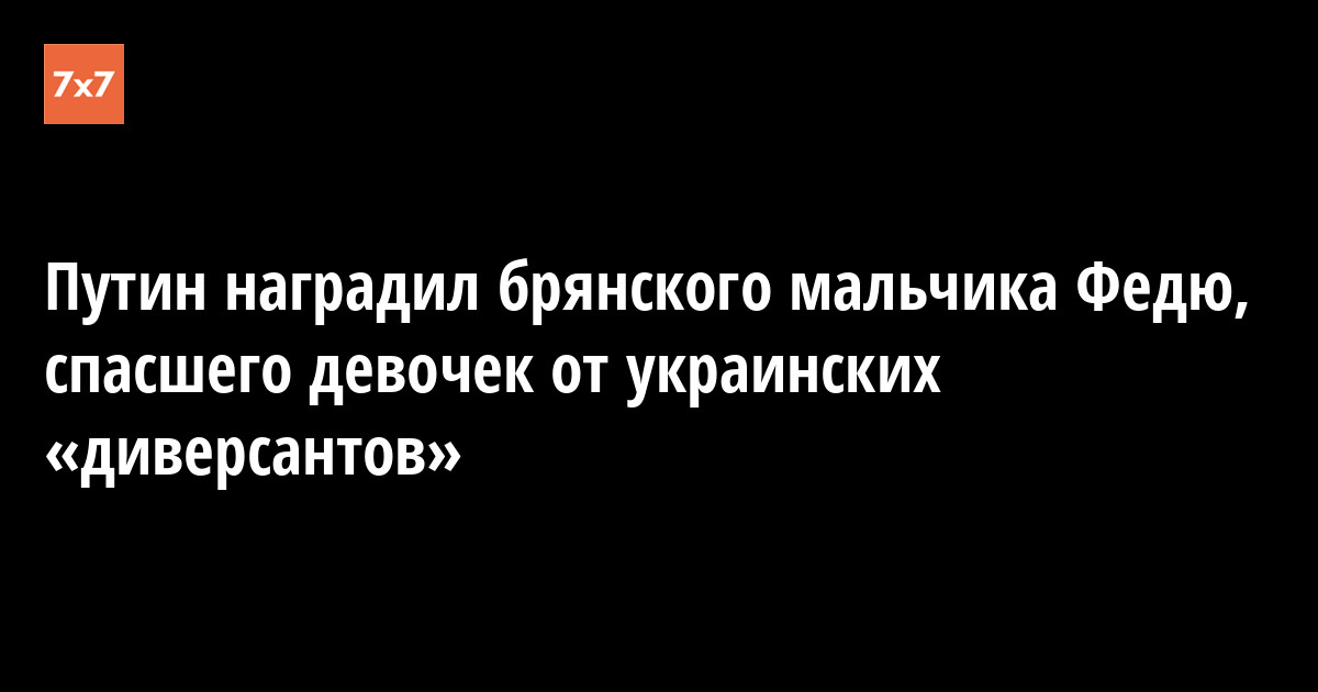 Президент Владимир Путин наградил мальчика Федю медалью «За отвагу». По словам властей, Федя увел двух первоклассниц от украинских «диверсантов», которые зашли в брянское село. Об этом сообщили на сайтах правовой информации и издания ТАСС 27 марта.