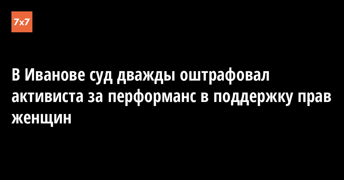 Ивановский суд оштрафовал активиста Дмитрия Карасёва на 10 тыс. руб. за нарушение правил проведения публичных акций. Активист приковал себя наручниками к лестнице в областном историко-краеведческом музее и развернул плакат «Ты не обязана быть женственной игрушкой для мужчин». Об этом «7x7» сообщил адвокат Оскар Черджиев 28 апреля.