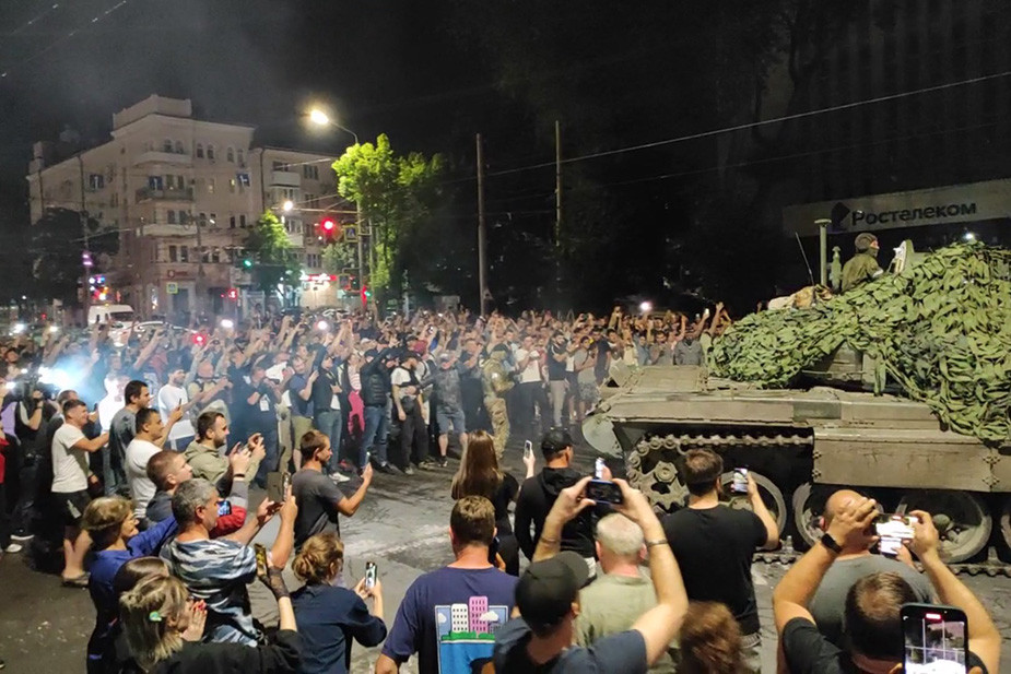 Во время мятежа ЧВК «Вагнер» к наемникам подходили люди в гражданской одежде, фотографировались с ними. Когда военные уезжали из Ростова-на-Дону, их провожали аплодисментами. Вернувшуюся после их отъезда полицию встретили криками «Позор!»